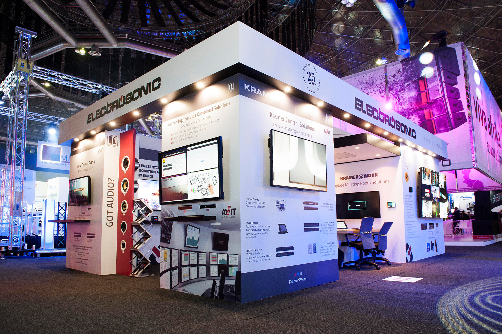 Exhibition stand and panel design, event material design, marketing material design
